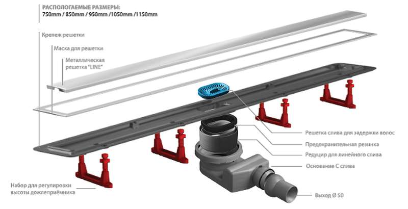 Лотки для душевых Premium PESTAN изготовлены из современных материалов с высоким уровнем надежности и регулировкой по наклону. Могут устанавливаться в пол или в стену и обладают высокой пропускной способностью. Решетка лотка изготовлена из нержавеющей стали с возможностью применения дополнительных элементов из белого или черного стекла, также решетка может быть покрыта золотом 24К. Длина лотка может быть: 300, 450, 550, 650, 750, 850, 950, 1050 и 1150 мм. Специальные дополнительные элементы: фильтр для здержания волос, обратный клапан.